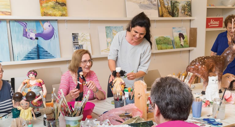 “העיסוק ביצירה הוא תרפויטי מאוד. אני חושבת שהיצירה בחוג מאפשרת לאנשים להיות במגע עם מקומות בעצמם שלא היו מגיעים אליהם לולא החוג, שלא ידעו על עצם קיומם. אני מאמינה שהאמנות מחברת אותנו לילד שבתוכנו.”