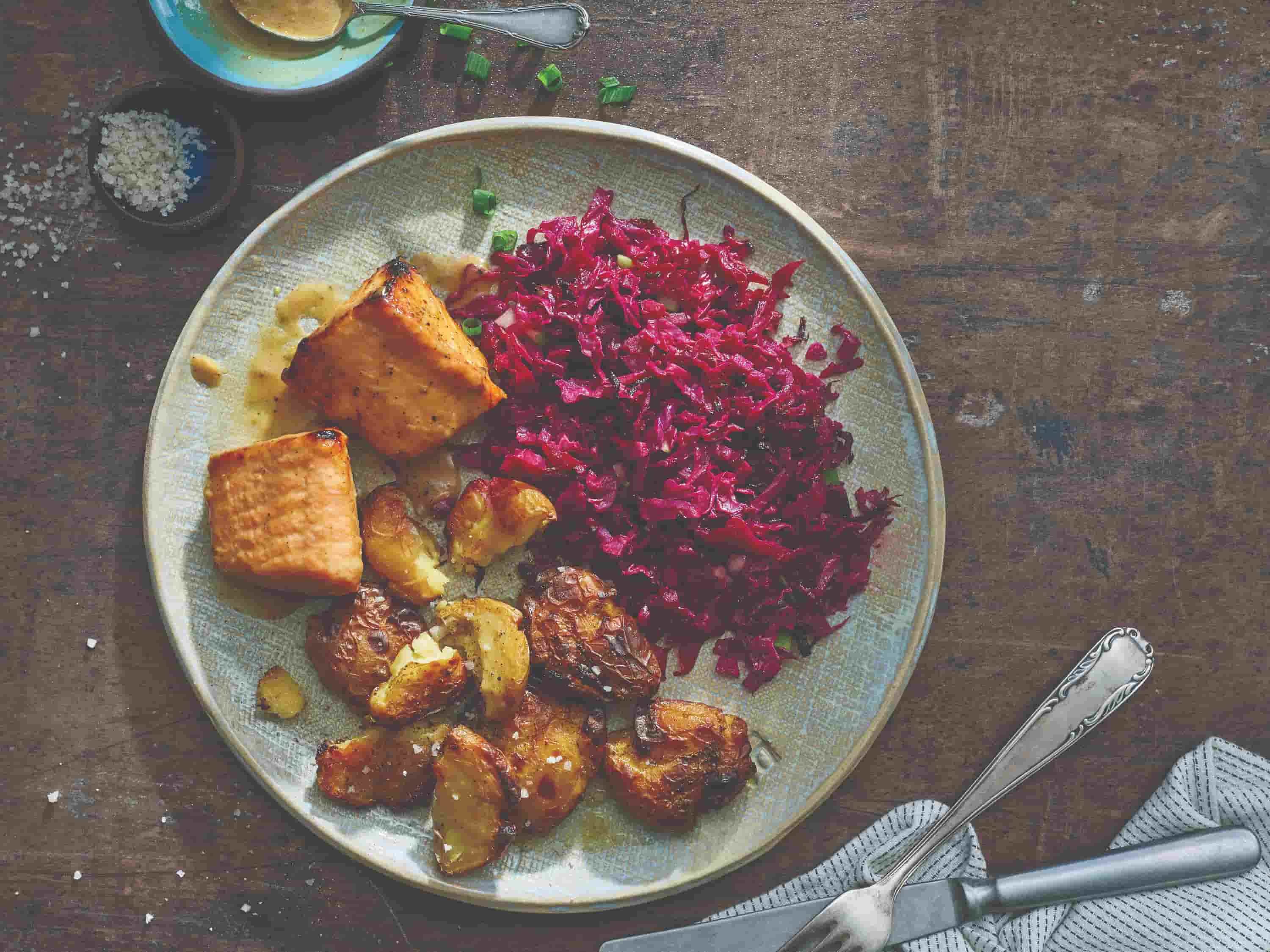 סלמון בחרדל ובדבש ועם כרוב סגול